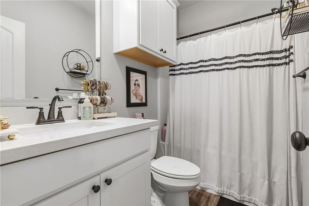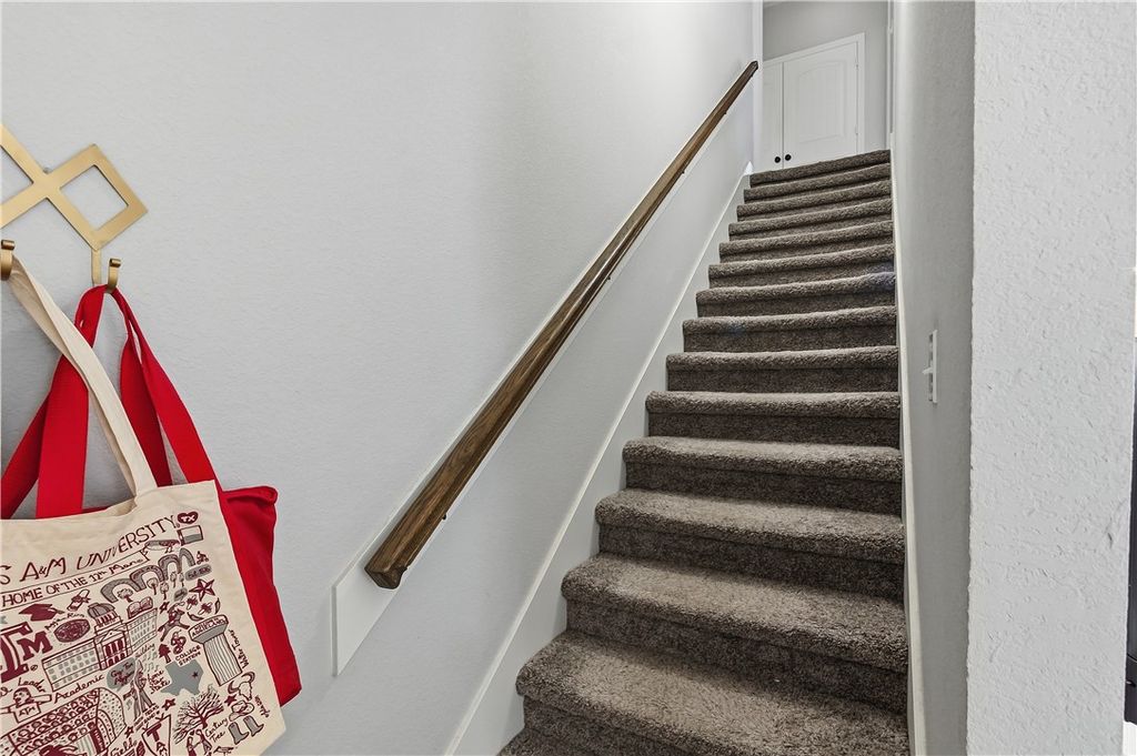 2020 build in Horse Haven on a cul-de-sac with a layout everyone loves! This 4 bed, 4 bath home offers the ideal setup with 2 bedrooms down + 2 up, each with its own bathroom"”perfect for roommates, guests, or flexible living. From the moment you arrive, the cute pink front door sets the tone. Inside, the open-concept living, kitchen, and dining space make everyday living easy and entertaining effortless. Hard surface flooring throughout all common/wet areas and carpet on stairs and in bedrooms. Well maintained one owner home plus a pre-listing inspection already completed for added peace of mind. Step out back to a fully fenced patio + yard and enjoy plenty of parking, a rare and valuable bonus. Located just minutes from Texas A&M, shopping, and dining, this is a prime opportunity for investors or Aggie parents. Great price for a 4/4 in Aggieland"”opportunities like this don't come around often! Neighborhood perks include a community pool and spa, adding even more appeal for living or leasing.