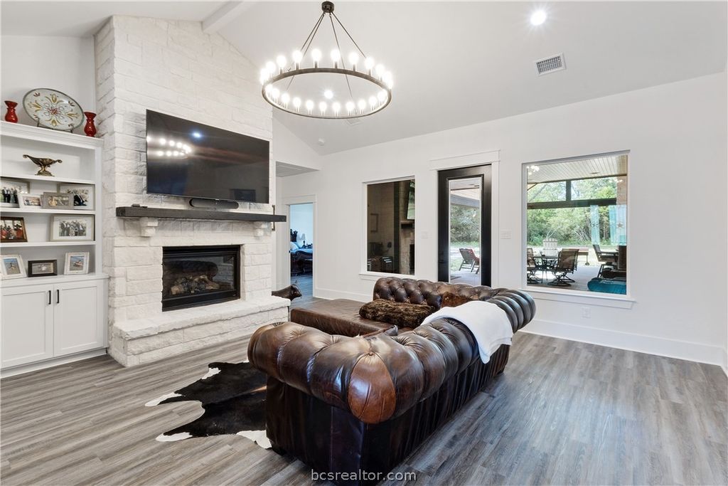Beautiful newer construction home situated on 16.41 acres in a private, heavily wooded setting with three ponds. Conveniently located within easy access to Bryan/College Station. The home offers approximately 4,005 sq ft of living space (per builder), featuring 3 spacious bedrooms, each with a private ensuite bath, along with 2 additional half baths. The open-concept layout connects the living, dining, and kitchen areas, ideal for everyday living and entertaining. Additional features include a game room with wet bar, media/theater room, two office/flex spaces, oversized walk-in pantry, and separate utility room. The property also includes an oversized, air-conditioned 4-car garage. Outdoor living includes a covered patio with fireplace and vaulted ceiling, with space for future outdoor kitchen or bar area. There are three 911 addresses for this property (17401 for the main home with 7.81; 17303 and 17305 for the additional 8.59 acres)