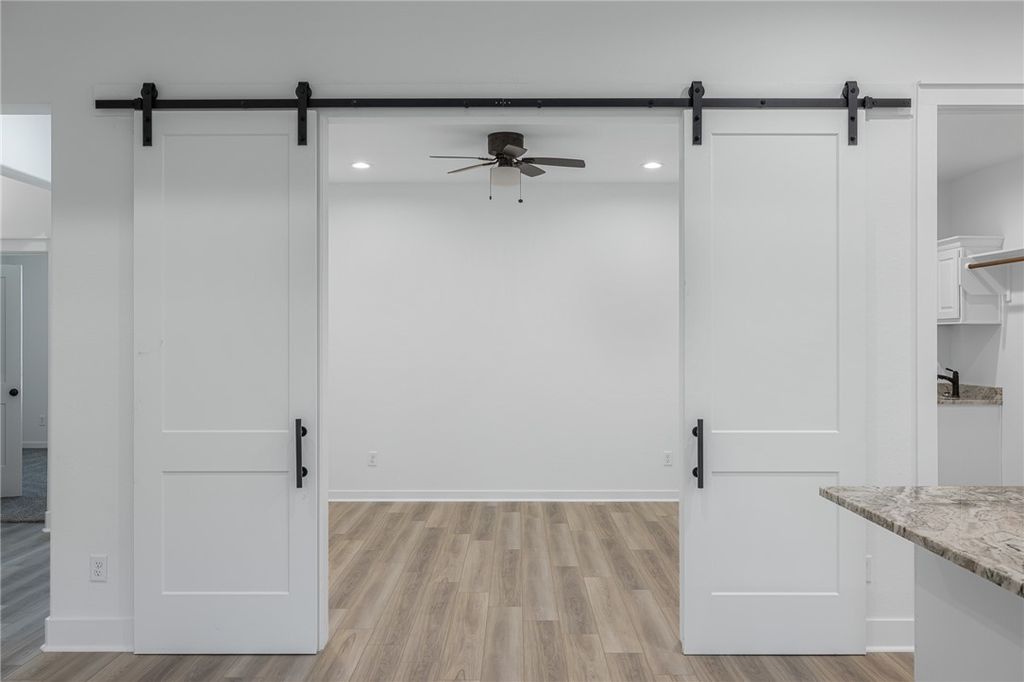 Experience Modern Farmhouse Living in Oakmont Welcome to this beautifully designed home featuring an open floor plan and a bright kitchen with modern farmhouse details. Elevated ceilings with exposed beams bring a sense of elegance, while subway tile showers and barn doors add unique touches to the bathrooms. Shiplap accent walls, neutral carpeting, and vinyl plank flooring provide a versatile backdrop for any decor. The laundry room, conveniently located off the 2-car garage, includes a sink and ample storage space. Outside, enjoy the covered patio and fenced yard for relaxing or hosting outdoor activities. Residents can enjoy Oakmont's community amenities, including a fitness center, coffee bar cafe, swimming pools, a splash pad, sports fields, and scenic hiking and biking trails. Explore this home and everything Oakmont has to offer. Contact an agent today to schedule a showing or for more details!