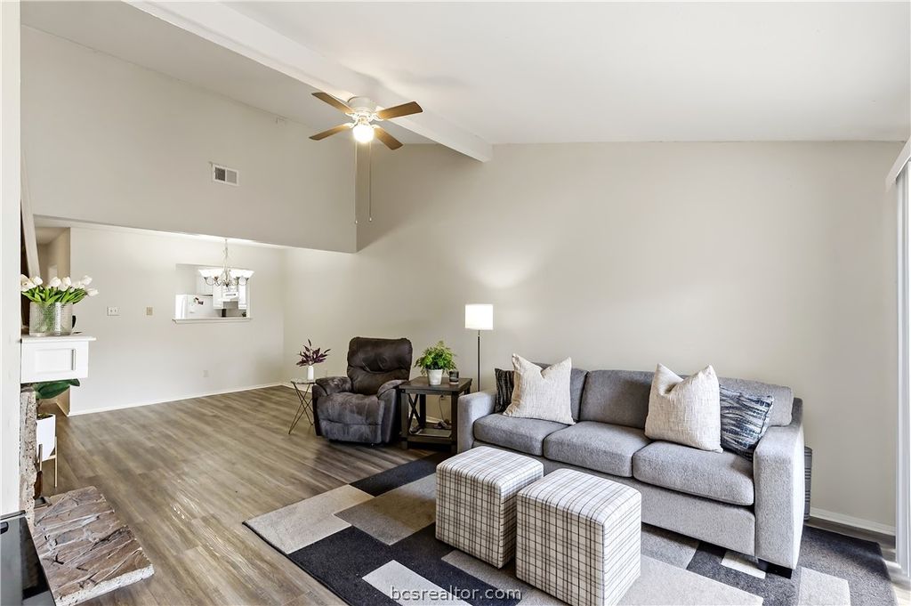 Adorable 2-bedroom, 2-bath townhome in the heart of College Station! This charming home features raised ceilings and abundant natural light throughout, creating a bright and airy feel. The kitchen has plenty of cabinets for storage and a pantry. A dining area and spacious living room, complete with a cozy stone gas fireplace with glass sliding doors to the backyard area. Enjoy outdoor living with a private fenced patio, plus an additional secluded patio just off the primary bedroom"”perfect for morning coffee or evening relaxation. An attached 1-car garage adds convenience and extra storage. Centrally located and close to shopping, dining, and everyday conveniences. Best of all"”NO HOA!