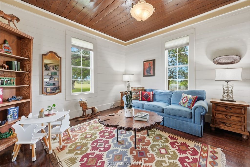 Step back in time with this one-of-a-kind historic estate built in 1875 and set on over 60 beautiful, fully fenced acres. As you enter through the iron gate and follow the picturesque oak-lined driveway, you will find everything you have been searching for. This 4-6 bedroom, 5 1/2 bath home offers unforgettable views from every room. It is packed full with timeless character boasting original wood floors, shiplap, beadboard accents, exposed beams, and classic clawfoot tubs. The vivacious kitchen features a stunning picture window overlooking the crystal-clear 3.5-acre pond. Designed for both relaxation and entertainment, this property includes multiple outdoor living areas, an equestrian area for horses, one new barn and one vintage barn, a beautiful pond for fishing and swimming (there is a diving board!), a white picket fenced garden/orchard area, and two gazebos- one sporting a pizza oven imported from Italy and the other a gas fire place. With an agricultural exemption in place and endless opportunities to enjoy country living, this remarkable property is truly a rare opportunity. Come take in the breathtaking seasonal views of wildflowers in bloom, immerse yourself in the peaceful sounds of birds chirping, hang with friends and loved ones by the campfire, fish and cool off in the pond, frequent the charming towns and markets, and enjoy this property as a total package all year round.
