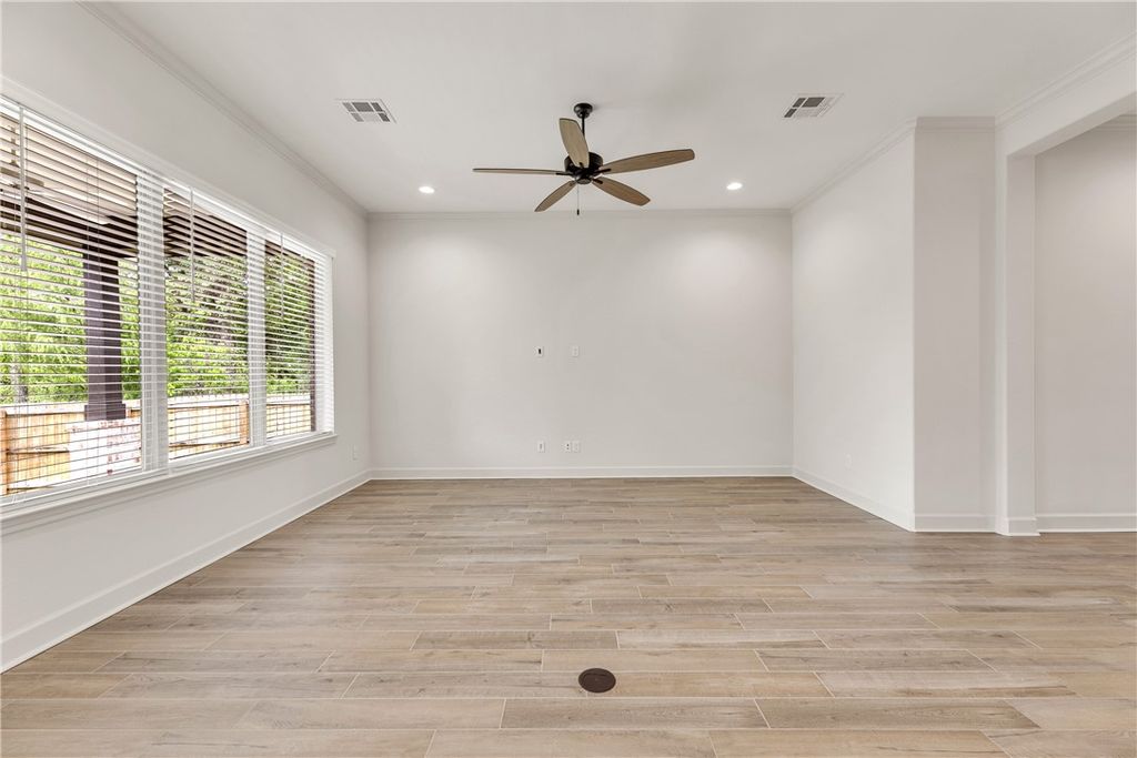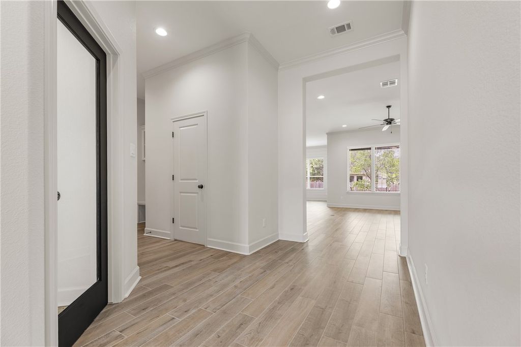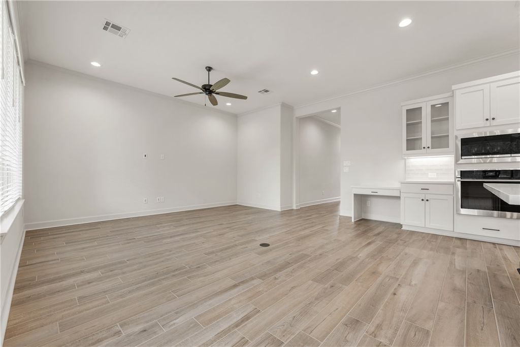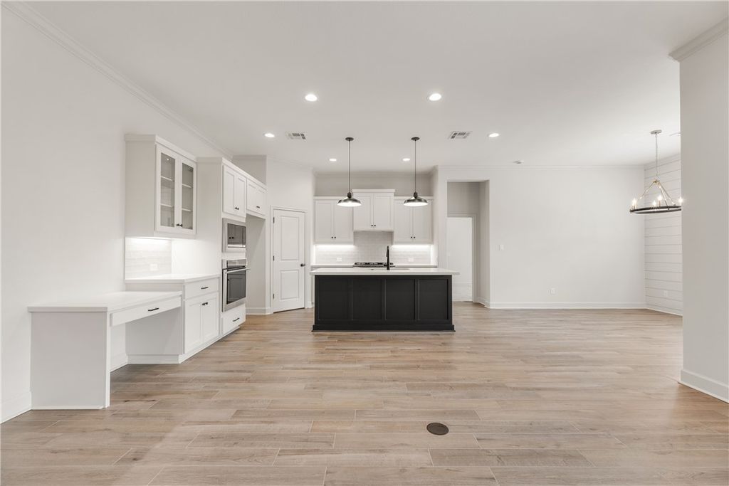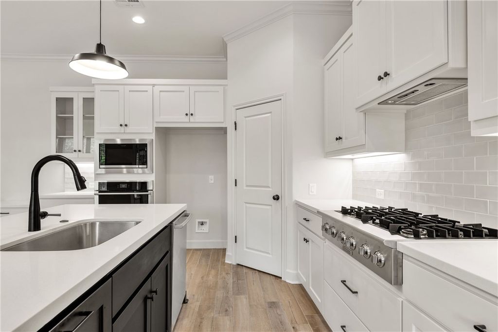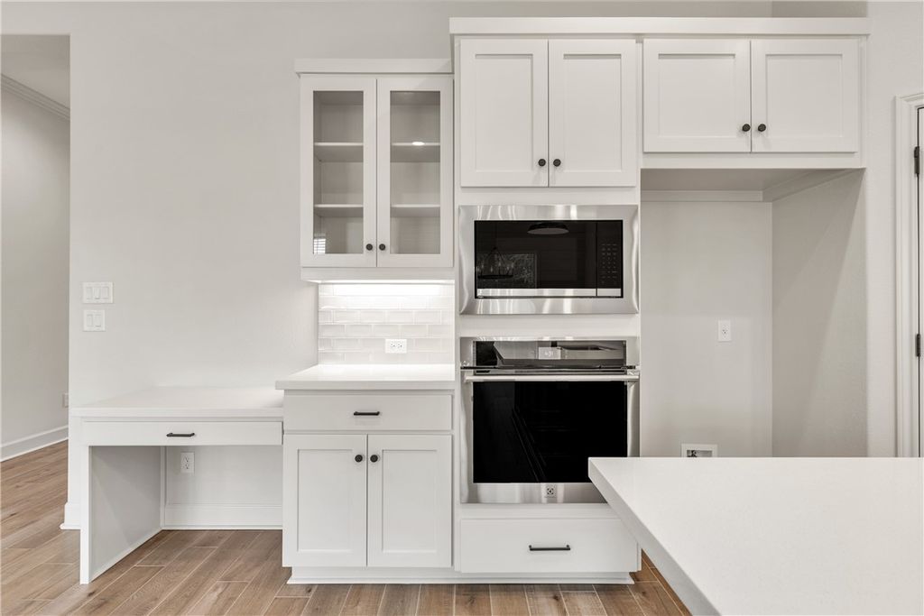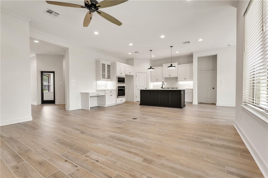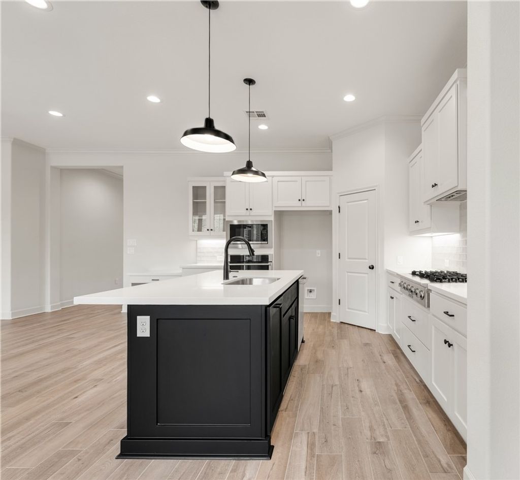 Beautifully designed home by RNL Homes, tucked away at the end of a quiet cul-de-sac, backing to a serene greenbelt in the highly desirable Greenbrier community. This thoughtfully crafted home offers 3 bedrooms, 2.5 bathrooms, and a spacious, open-concept layout for both everyday living and entertaining. The inviting family room flows seamlessly into a well-appointed kitchen featuring a large center island, walk-in pantry with built-in shelving, and semi-professional stainless steel appliances. The private primary suite is a true retreat, complete with a spa-like bathroom featuring a generous walk-in shower and oversized walk-in closet. Additional highlights include high ceilings, abundant natural light, and a large covered back porch that is useful for relaxing or entertaining while enjoying the peaceful greenbelt setting.