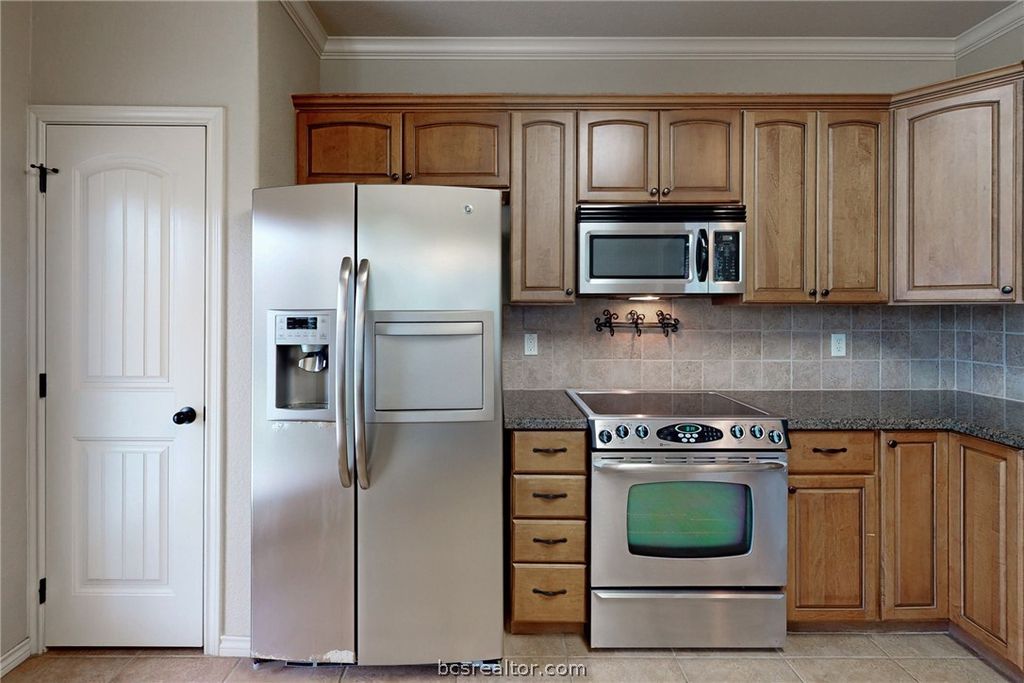 Beautiful 3 bedroom, 2.5 bath townhome located in the desirable Spring Creek Townhomes community in South College Station. This well maintained home offers a spacious and functional layout, featuring a large kitchen with granite countertops, tile backsplash, stainless steel appliances, and ample cabinet space, perfect for cooking and entertaining. The inviting living room includes a cozy fireplace with gas logs, creating a warm and welcoming atmosphere. The large primary bedroom features a private balcony and an en-suite bathroom with a soaking tub and separate shower. Additional highlights include a 2 car garage, fenced backyard ideal for outdoor enjoyment, and thoughtful updates such as a roof approximately 4 years old and a water heater replaced in 2022. The HOA provides front and back yard maintenance as well as sprinkler system management, making for easy, low maintenance living. Residents of Spring Creek Townhomes also enjoy access to a community pool. Conveniently located near HEB, restaurants, and shopping in the Tower Point area, this home offers both comfort and accessibility. A fantastic opportunity for low maintenance living in a prime location!