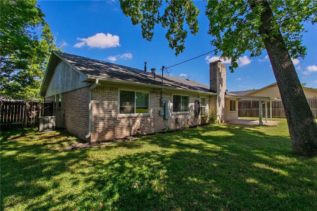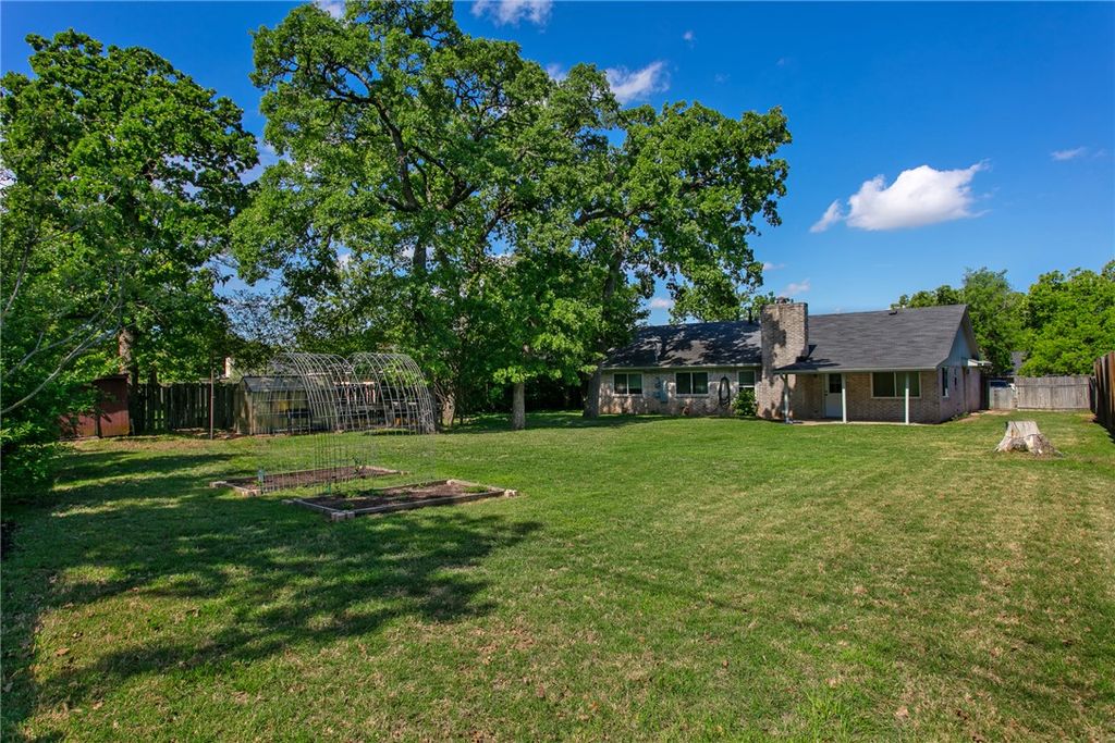 Nestled in the desirable Southwood Valley area of College Station, this beautifully updated 3-bedroom, 2-bath home offers comfort, style, and space both inside and out. Situated on a large lot, the property features a spacious, fully fenced backyard, perfect for entertaining, pets, or relaxing evenings under the covered back porch. Inside, you'll find durable vinyl flooring throughout with no carpet, complemented by updated tile in both bathrooms. The kitchen and bathrooms showcase elegant granite countertops, while painted cabinetry adds a fresh, modern touch. The inviting living room features a cozy fireplace with gas logs, creating the perfect gathering space. The primary suite has been thoughtfully updated with new flooring and a large, tiled walk-in shower. Additional improvements include new windows installed in 2021, as well as new front and back doors for added efficiency and curb appeal. Complete with a 2-car garage, this move-in ready home combines thoughtful updates with a fantastic location close to schools, parks, and amenities. Don't miss your opportunity to make this Southwood Valley gem your own!