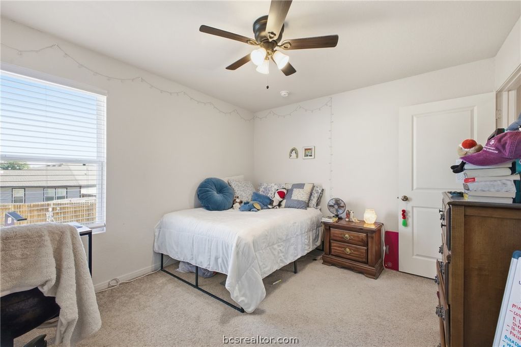 Spacious 5-bedroom, 3-bath home situated on one of the largest lots in the neighborhood, offering plenty of room to spread out both inside and out. This well-maintained property features upgrades such as ceiling fans in every room for added comfort and a covered back patio ideal for relaxing or entertaining. The functional layout provides generous living space, making it suitable for a variety of living arrangements. Conveniently located near Texas A&M including the University Health Science Center and the Texas A&M College of Veterinary Medicine & Biomedical Sciences, the property offers easy access to major employers, campus facilities, and surrounding amenities. Currently leased, this home presents an opportunity for investors or buyers seeking to occupy the house. Furniture may convey with an acceptable offer, providing added value and convenience.