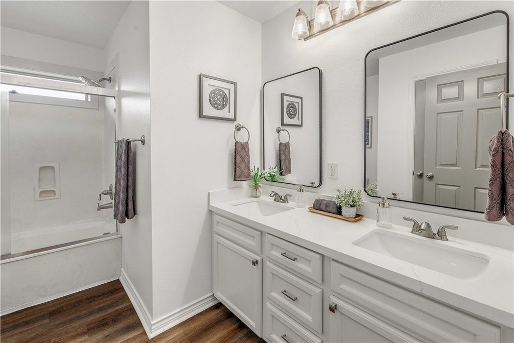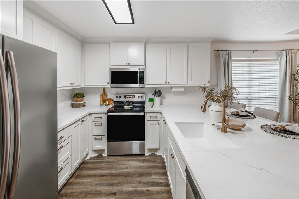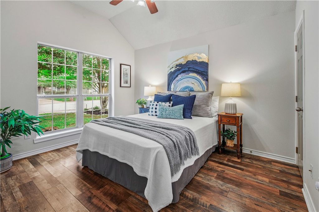 Situated on a corner lot in the Sun Meadows community near Bachmann Park, this stunning, fully remodeled 4-bedroom, 3-bathroom home is the perfect blend of comfort, function, and effortless charm. The heart of the home is a show-stopping modern kitchen featuring sleek white countertops and bright white cabinetry that flows beautifully throughout. The cabinetry provides more than enough room for all your kitchen essentials, with ample space that serves as a pantry. The kitchen seamlessly opens into a spacious living room that was made for both lively entertaining and quiet evenings in. Two of the four bedrooms feature updated en-suite bathrooms, while two bedrooms share access to a generously-sized guest bathroom. The fenced backyard also features a large covered patio and freshly painted deck that is perfect for evening gatherings, lazy weekend mornings with coffee in hand, or simply enjoying a quiet moment outdoors.