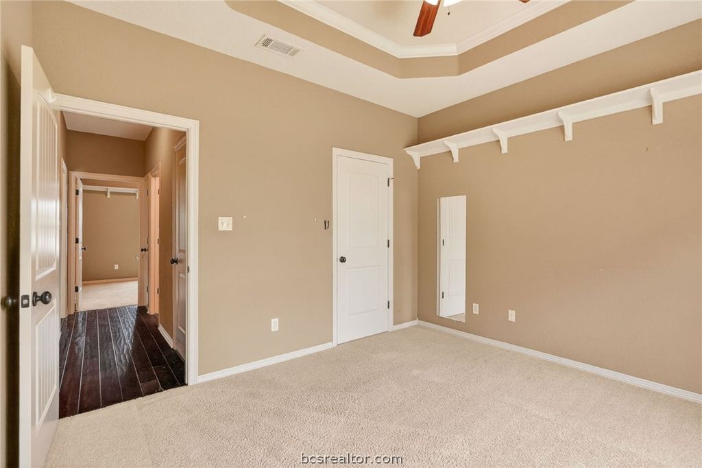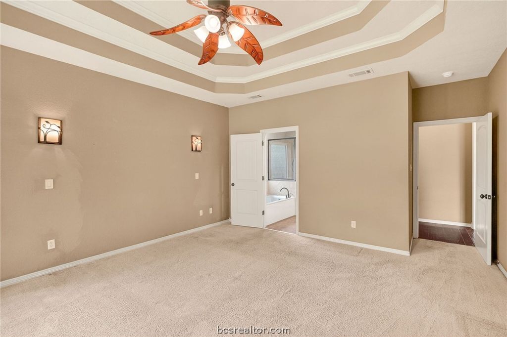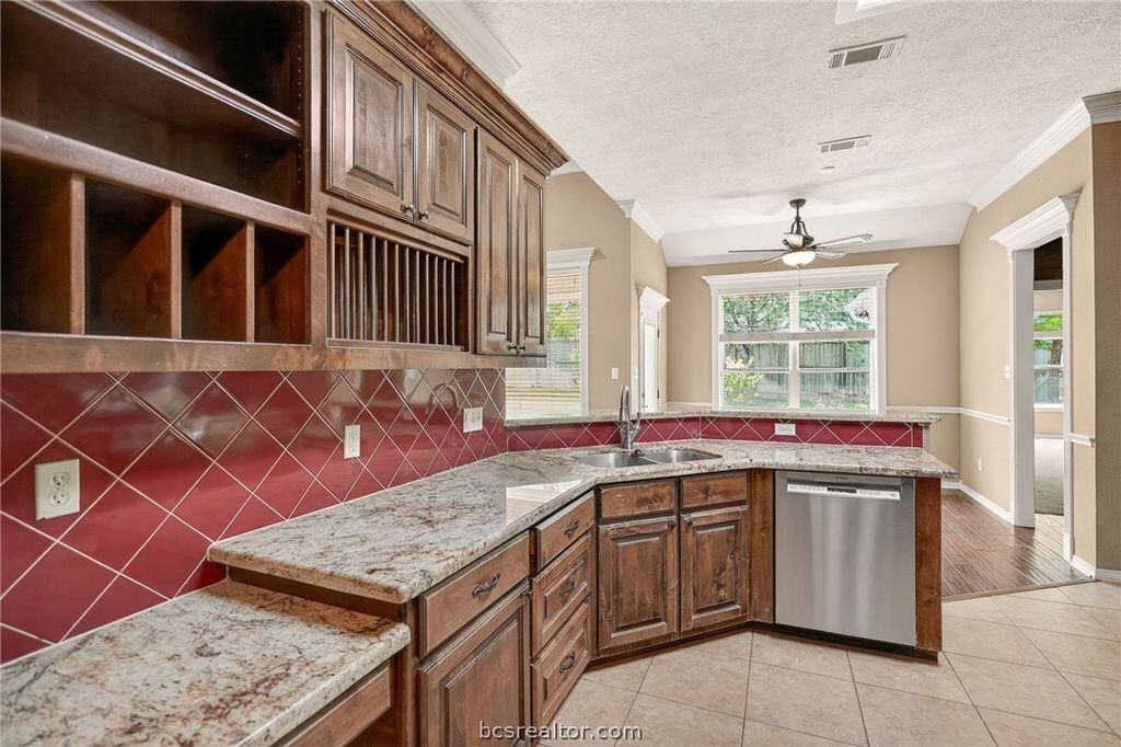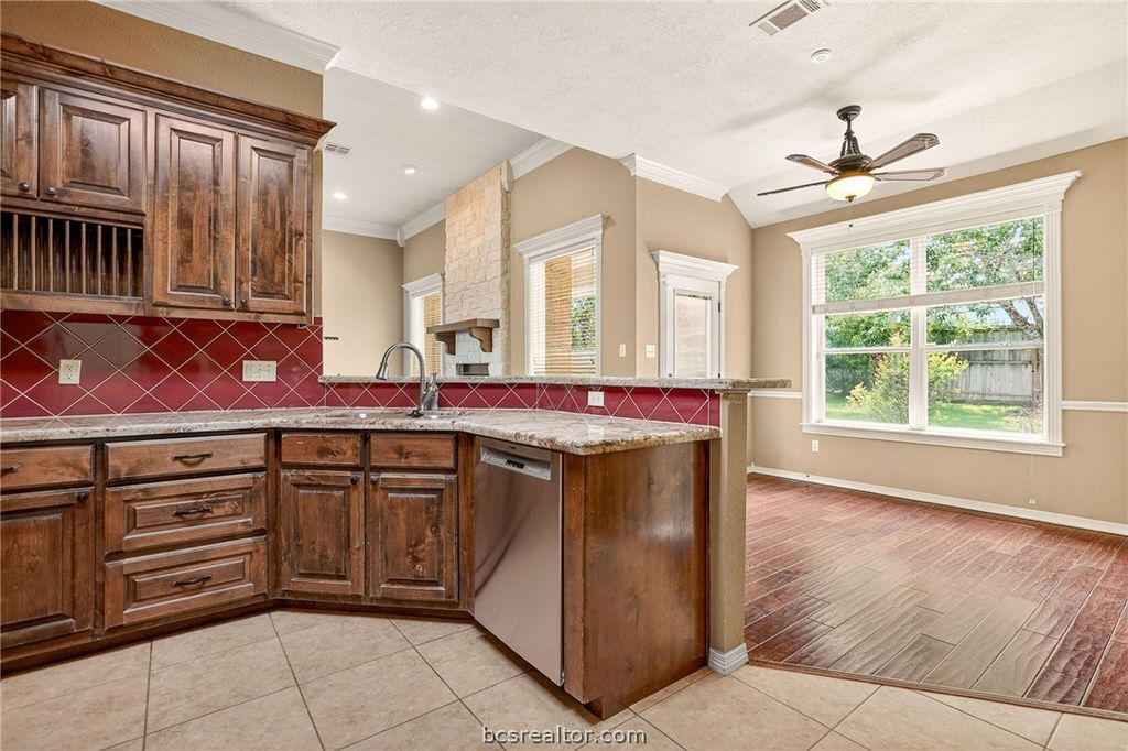 Located in College Station's Spring Meadows, this spacious 4 bedroom, 2.5 bathroom home offers a well-designed layout and timeless features throughout. The large living room welcomes you with tall ceilings, abundant natural light, and a wood-burning fireplace with gas starter, creating a warm and inviting space. The home also features both a formal dining room and a breakfast area just off the kitchen, providing flexibility for everyday living and entertaining. The kitchen is well-appointed with granite countertops, stainless steel appliances, and ample cabinet space. The primary suite features elegant tray ceilings and a bay window, along with an en-suite bathroom complete with dual sinks, soaking tub, separate shower, and a walk-in closet with custom built-ins. Additional bedrooms include custom shelving, adding both character and functionality. The utility room includes a sink for added convenience. Step outside to enjoy a spacious patio and backyard shaded by mature trees, all enclosed by a wood privacy fence for relaxing or entertaining. Complete with a 2-car garage and located in a desirable neighborhood, this home offers comfort, space, and a great location close to all that College Station has to offer. Set a time to see it before it is gone!