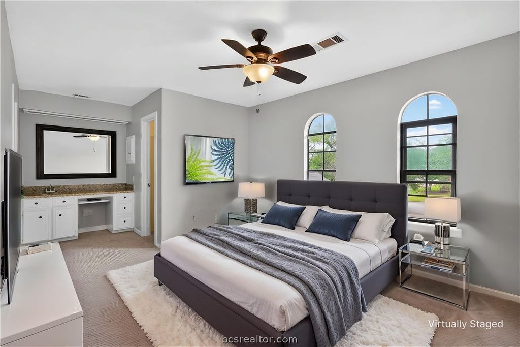 Located in Bryan's Briarcrest Valley, this beautifully designed home offers a perfect blend of space, comfort, and functionality. Step inside to a spacious living room featuring built-ins and a cozy fireplace, creating an inviting atmosphere for relaxing or entertaining. A convenient wet bar just off the living area enhances the home's entertaining appeal. The kitchen is a standout with an island, granite countertops, and abundant storage for everyday living and hosting. The home also features a formal dining area and family room providing flexibility for both casual meals and formal gatherings. French doors lead to a large back porch, seamlessly connecting indoor and outdoor living. With a thoughtful layout, this home includes two bedrooms downstairs, including the primary suite which offers direct access to the back porch and a private courtyard patio. It truly is a peaceful retreat for morning coffee or evening relaxation. Upstairs, you'll find two additional bedrooms, offering privacy and space for family or guests. Additional highlights include a spacious 2-car garage with 3 storage rooms and well-planned living areas throughout. This Briarcrest Valley home combines comfort, style, and versatility for anyone looking to enjoy both everyday living and entertaining with ease. Come see this lovely home before it is gone!
