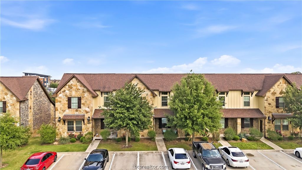 Discover a tranquil oasis in the heart of College Station with this charming 4-bedroom, 4-bathroom residence. Expertly designed for both comfort and versatility, this home offers a wonderful layout with an open living room and dining room combo, perfect for entertaining. The interior features hard flooring throughout, ensuring durability and easy maintenance. On the main level, find two generously-sized bedrooms, each with an adjoining bathroom for convenience and privacy. Upstairs, two additional bedrooms and baths offer comfort and flexibility, ideal for accommodating guests or creating a dedicated workspace. A highlight of the property is the expansive upstairs balcony that offers scenic views of the community pond"”a perfect spot to unwind with a book or simply enjoy moments of peace amidst nature. The exterior boasts a covered front porch accented with charming curb appeal, providing a welcoming first impression. The modest backyard is thoughtfully designed with a gate that leads directly to a scenic walking trail, perfect for an active lifestyle or quiet morning strolls. This property combines elegance with functionality, creating a serene living space that harmonizes with its natural surroundings. Don't miss the opportunity to make this versatile home your own!