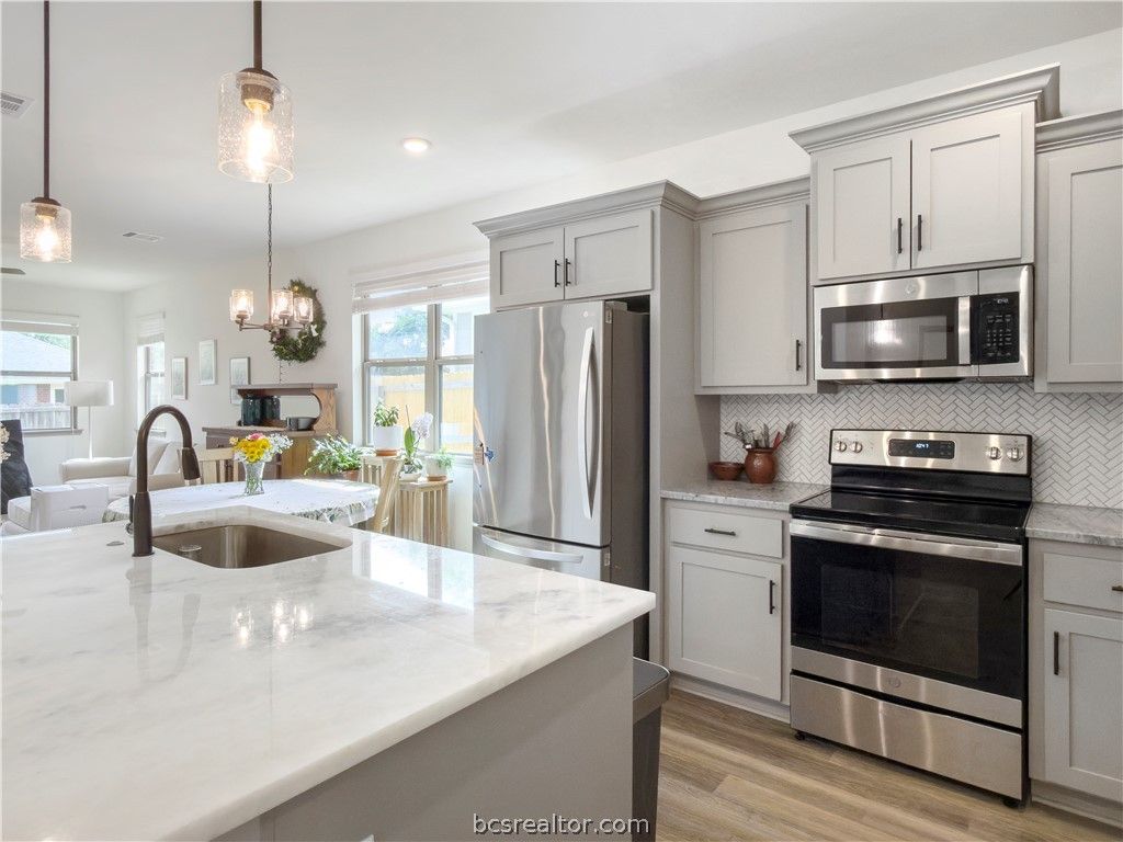 Discover this custom built 3 bedroom- 2 bathroom with office home in Stone Falls! Enjoy the benefit of being situated on a quiet cul-de-sac while also being less than 5 minutes away from all the shopping off Harvey Mitchell. For families, this home is walking distance from Jane Long Intermediate School. Inside, you'll notice the premium features, quality craftsmanship, and thoughtfully designed floor plan today's homeowners desire. The home features a beautiful kitchen with a large island, complemented by luxury vinyl plank flooring throughout. The split floor plan provides added privacy for the primary suite, while the spacious living room offers an inviting area for relaxing or entertaining. In addition to three dedicated bedrooms, there is a versatile flex room at the front of the home, perfect for a home office. All kitchen appliances, as well as the washer and dryer, are included. This home qualifies for the Chase Homebuyer Grant! Reduce your upfront expenses with $2500 off closing costs if you get a mortgage through Chase. Schedule your tour today!