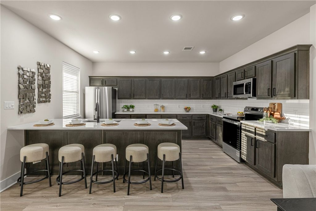 Don't miss one of the last chances to own a **BRAND NEW** 4-bedroom, 4-bathroom townhome in The Barracks Townhomes' newest phase - Barracks West - located in College Station. This exciting phase offers newly designed interiors while maintaining the classic Barracks exterior charm. With a fresh, modern feel, these townhomes feature stained gray cabinets, elegant quartz countertops, luxury vinyl plank flooring, and sleek stainless-steel appliances. Additional upgrades include tiled shower surrounds and a private fenced backyard, creating the perfect blend of style and functionality. Plus, with on-site property management, this is a turn-key investment opportunity. The HOA provides Gig Speed Fiber Internet, lawn care, and access to the Cove at BearX, complete with a sheet wave surf machine, lazy river, private cabanas, and more! This is the LAST brand-new home available in the community, now is the time to act. Don't wait"”secure your spot in The Barracks Townhomes today! This unit is currently being used as a staged model home, and is ready for an early move-in!