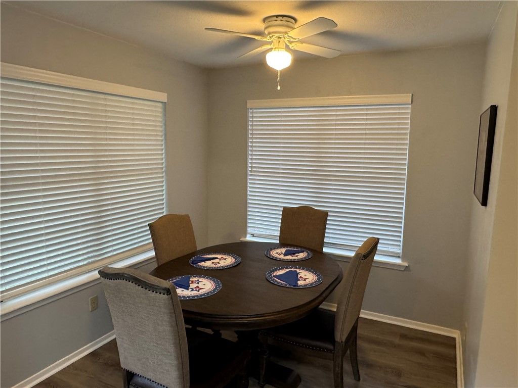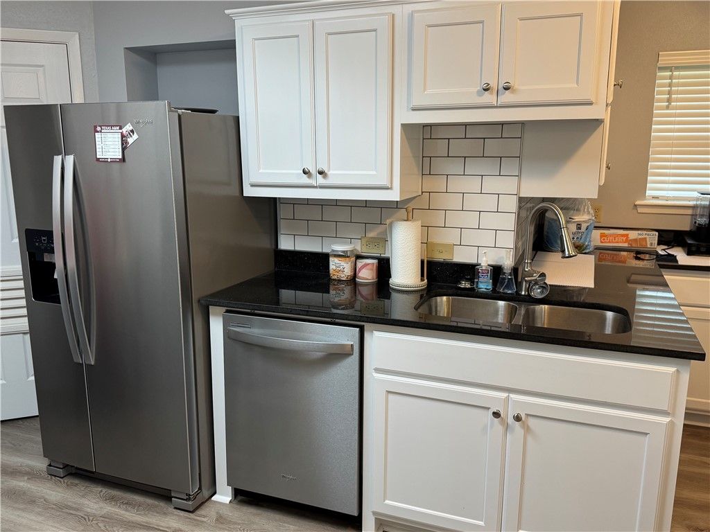 Welcome Home! This stunning 3-bedroom, 2-bath, split floorplan is loaded with extensive updates. When you visit, you will find this home has updated bathrooms, kitchen, vaulted ceiling, new flooring and paint inside and out. All of this, giving the home a bright new look and feel. The kitchen features granite countertops, subway tile backsplash, upgraded stainless steel appliances including gas stove, sink and fixtures. The living room boasts its open vaulted ceiling with a cedar beam, updated front door with covered porch and large picture window. The true master suite has its own on suite bathroom. This bathroom includes a double vanity, multi head walk-in tile shower and walk in closet. The second bedroom is a traditional bedroom. The third bedroom is attached to the second bath with a private entrance to the tub/shower combo. Additional updates include blown in insulation, new interior and exterior doors, and low-e windows with 2" privacy blinds throughout. It also has been updated with hard wired smoke/co detectors, all lighting fixtures and ceiling fans. The HVAC was replaced in 2024 with a new Carrier system. The gas hot water heater was replaced also. The exterior the property has been updated to Hardi Board siding. There is a large, fenced backyard including storage shed and massive old growth oak trees to shade the home. Situated on a cozy cul-de-sac street, this home invites you to make it your next castle.