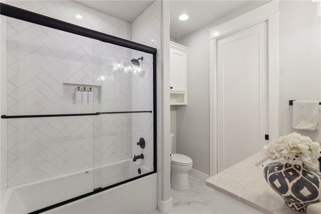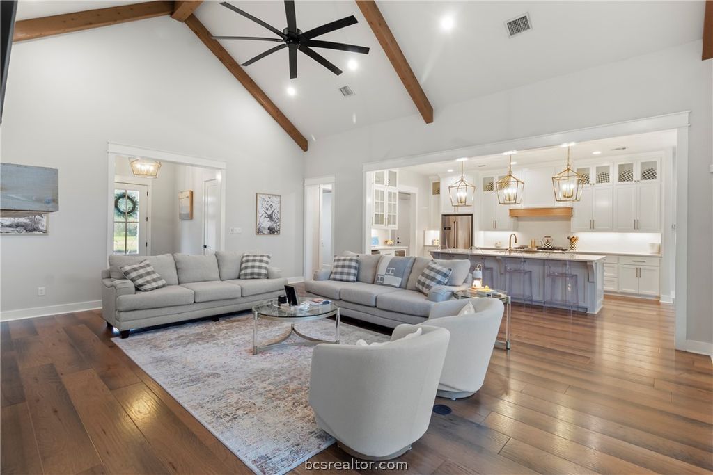 Builders personal home hidden in the trees of this one acre lot in College Station ISD. This home has it all with soaring ceilings, extensive 9" wood plank flooring, wide millwork, custom closets and custom millwork throughout. This 3 way split floor plan features 3 guest suites all with ensuite bathrooms and private primary suite. The primary suite has dual vanities, a deep soaking tub, multi-head walk-in shower and a bedroom sized closet! The home features a dream kitchen with chef quality appliances including a 48" gas range, ice maker, wine fridge, microwave, high velocity ventilation, quartz counters and cabinets galore. In addition the private study is a central command center behind the kitchen adjacent to the oversized walk in pantry. Outback is a heavily treed yard with plenty of room for a pool and features a covered patio, outdoor kitchen and so much more! Everything including the garage is oversized with room for all the toys and 3 over sized cars. Inside features like a mud room area and generous laundry area have all the features you want like a deep soaking sink, refrigerator, hanging space, and even an extra refrigerator! This home is like new and has so many extra features you only find in a builders custom home that will just make living life easier. Ask your agent for an appointment to view this home today!