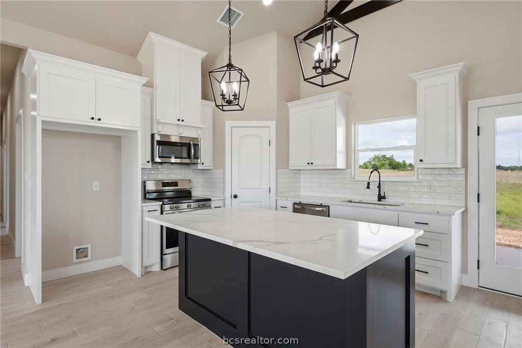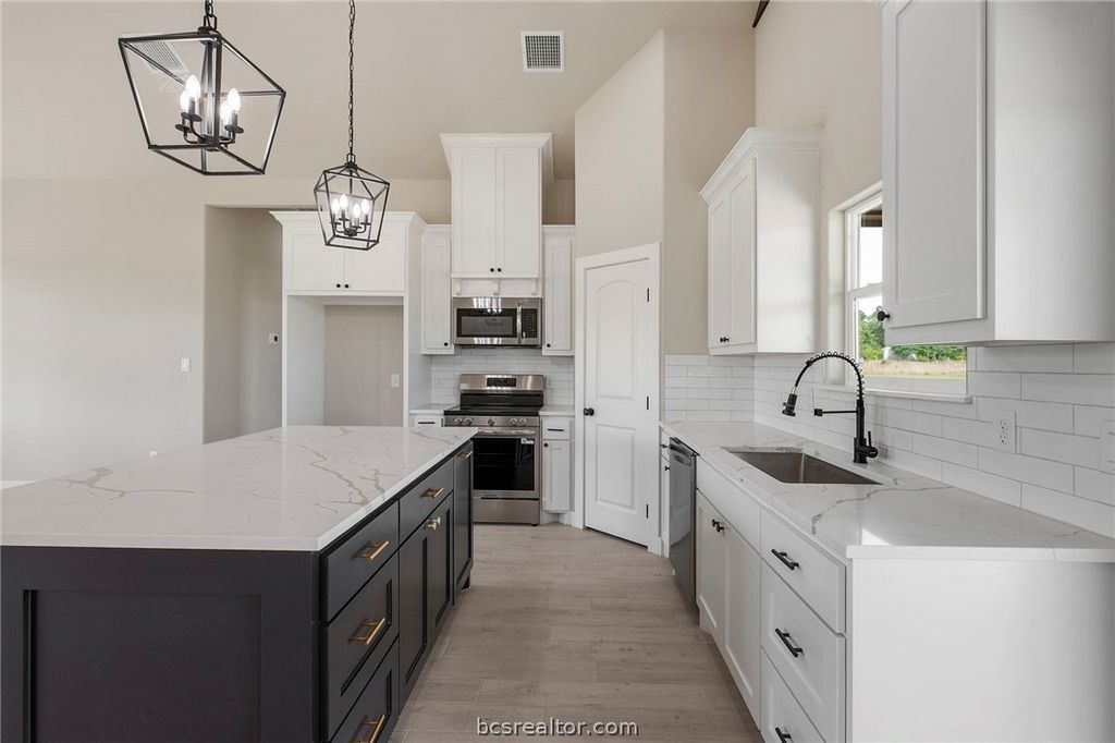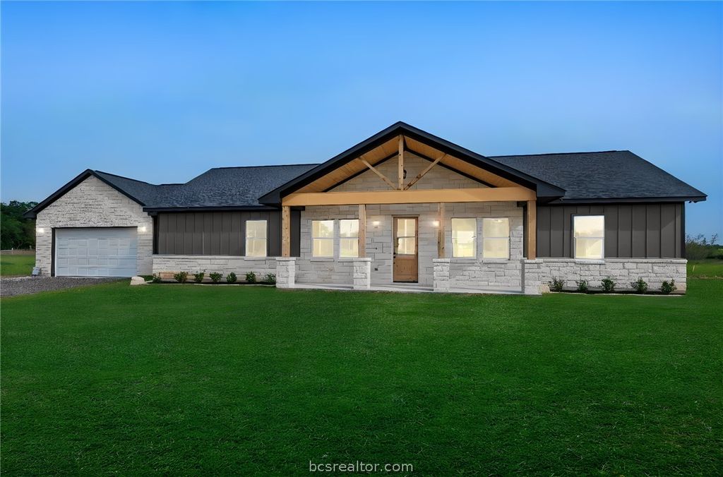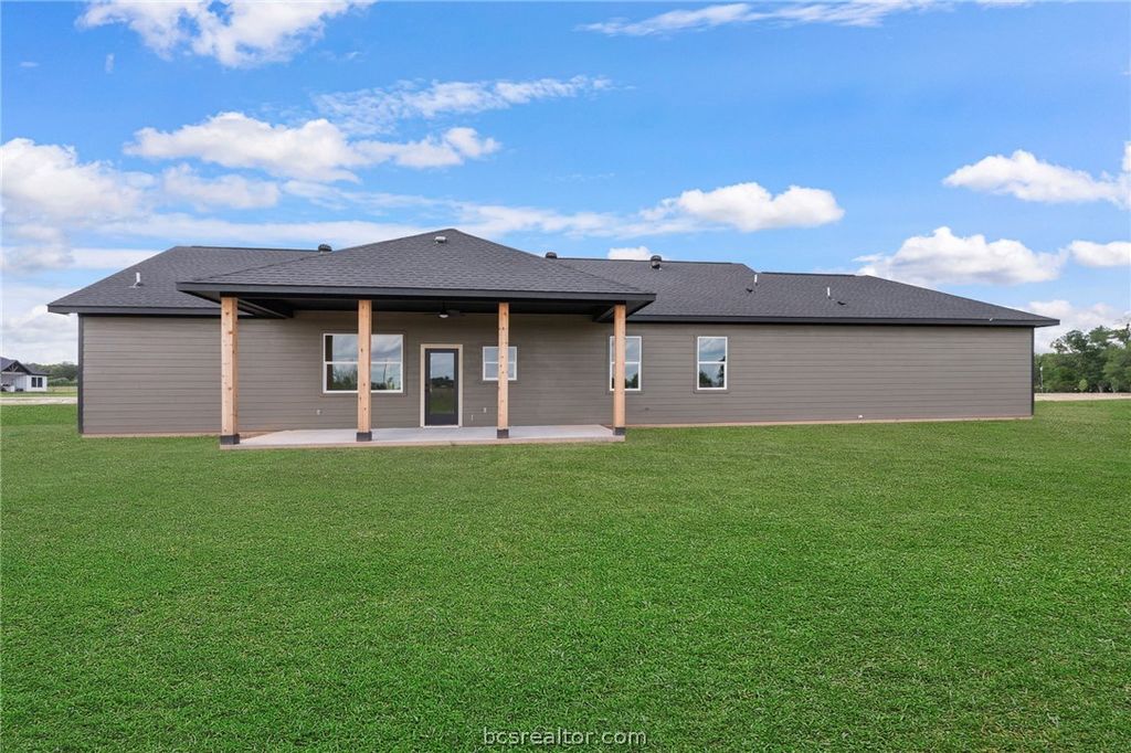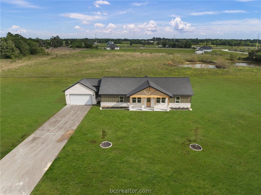 Discover elevated country living in this brand-new custom home in Franklin,TX. Offering 1,816 square feet on a full acre, this 3-bedroom, 2-bath residence with a 2-car garage blends sophistication with authentic Texas character. The expansive windows in the home invite an abundance of natural light, creating a bright and airy atmosphere. A soaring raised cathedral ceiling highlights the massive family room, while the open-concept design flows seamlessly into the dining area and a gourmet kitchen featuring an oversized island, quartz surfaces, and a generous walk-in pantry. The owner's suite provides a relaxing retreat with a large walk-in closet and a spa-style bath complete with a glass-enclosed shower, freestanding soaking tub, and sleek floating vanities. 2 spacious additional bedrooms, and the guest bath features matching wall-mounted cabinetry. A dedicated home office offers a quiet, functional workspace. Enjoy covered front and rear porches and take in beautiful Texas sunsets.