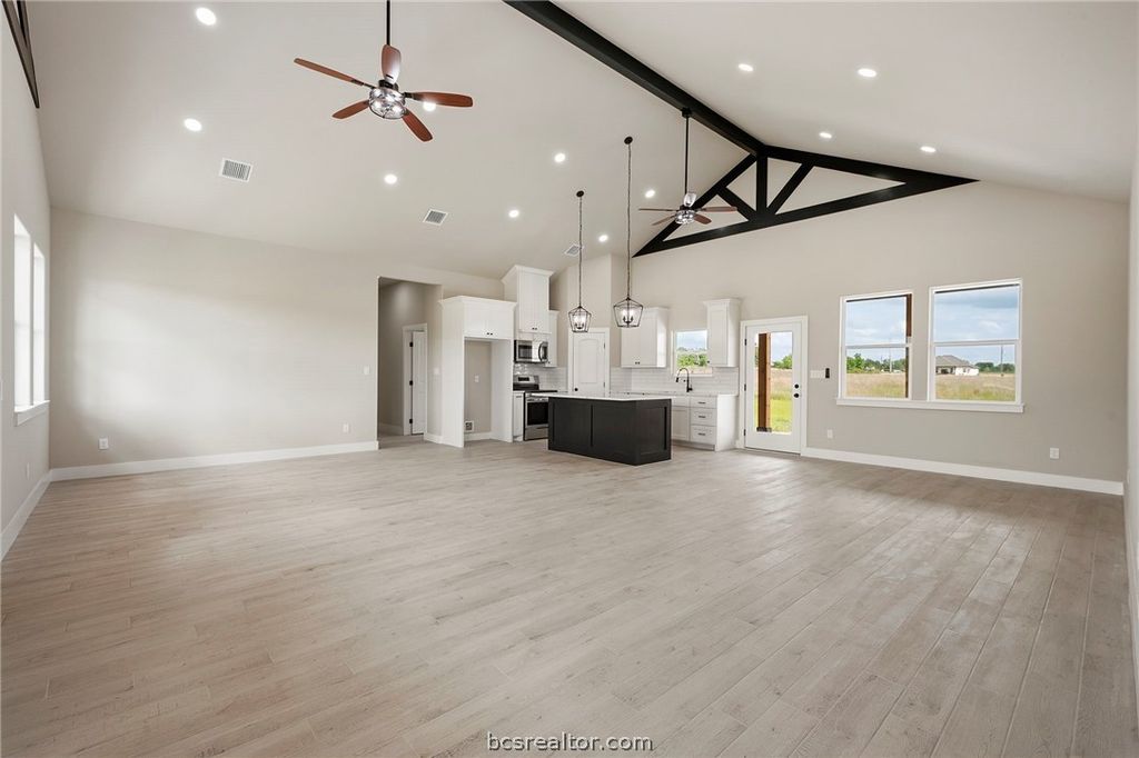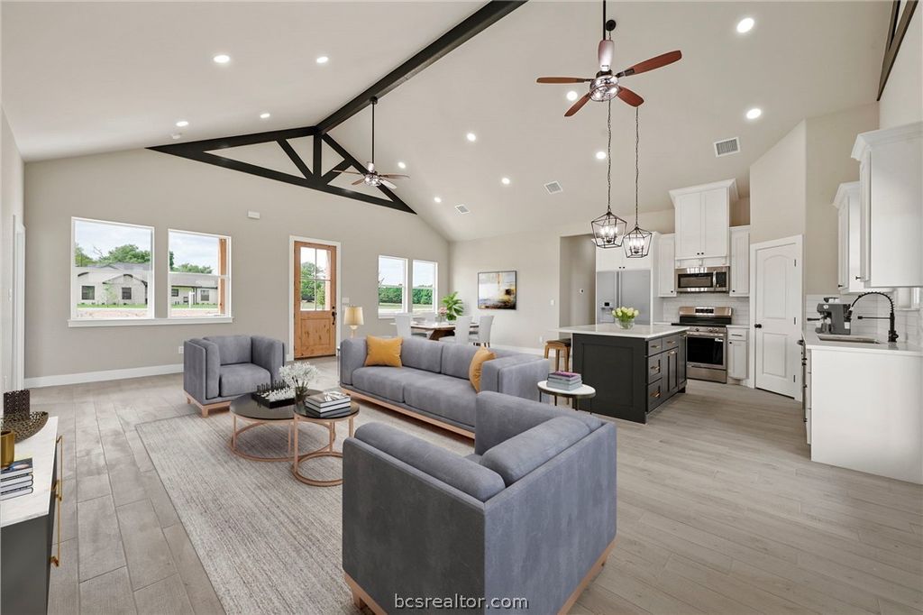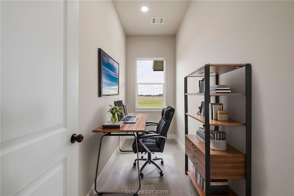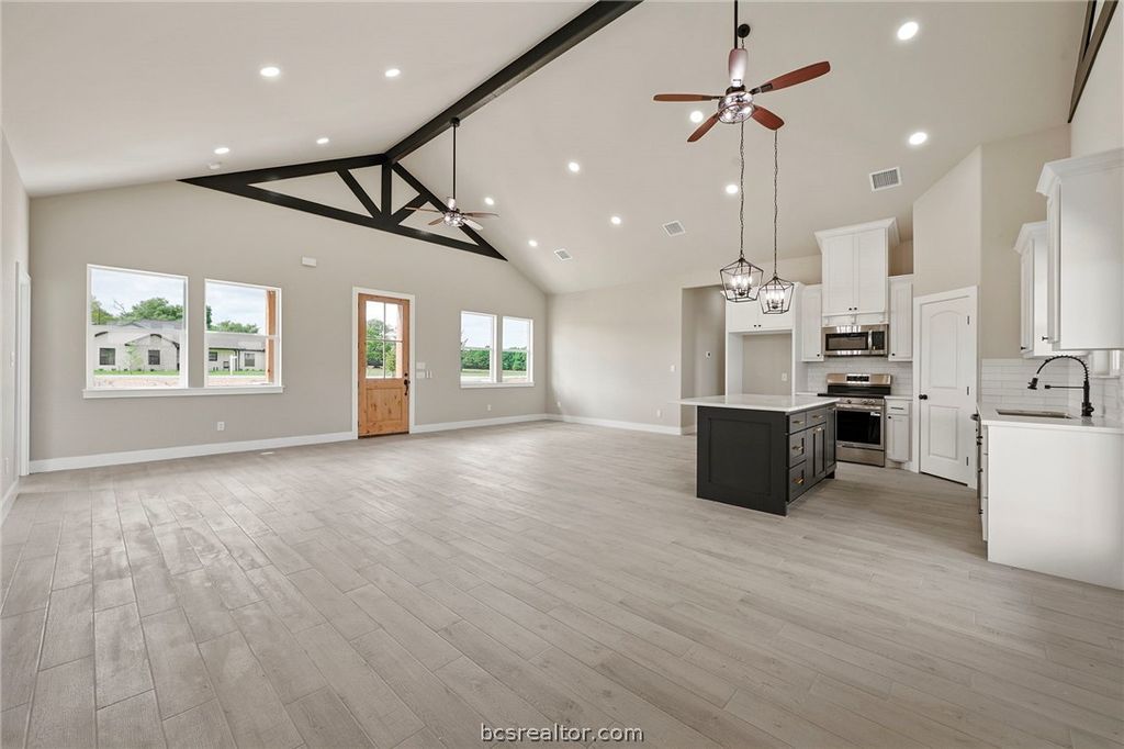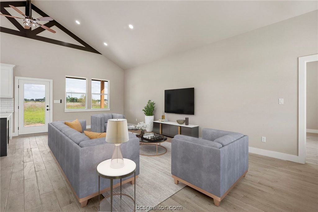 Discover elevated country living in this brand-new custom home in Franklin,TX. Offering 1,816 square feet on a full acre, this 3-bedroom, 2-bath residence with a 2-car garage blends sophistication with authentic Texas character. The expansive windows in the home invite an abundance of natural light, creating a bright and airy atmosphere. A soaring raised cathedral ceiling highlights the massive family room, while the open-concept design flows seamlessly into the dining area and a gourmet kitchen featuring an oversized island, quartz surfaces, and a generous walk-in pantry. The owner's suite provides a relaxing retreat with a large walk-in closet and a spa-style bath complete with a glass-enclosed shower, freestanding soaking tub, and sleek floating vanities. 2 spacious additional bedrooms, and the guest bath features matching wall-mounted cabinetry. A dedicated home office offers a quiet, functional workspace. Enjoy covered front and rear porches and take in beautiful Texas sunsets.