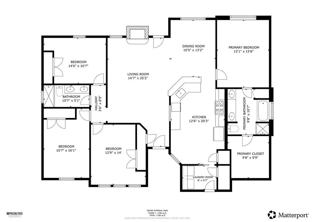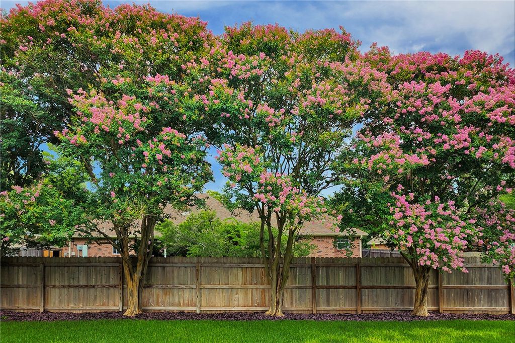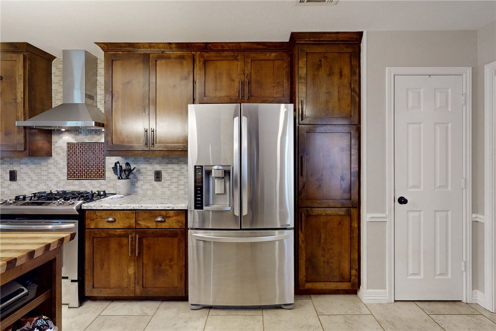 Beautifully maintained 4-bedroom, 2-bath home located in the desirable Pebble Creek community of College Station. This move-in ready property features no carpet, with durable vinyl plank flooring throughout the living room, hallways, and all bedrooms. The spacious living room boasts a cathedral ceiling and a stunning floor to ceiling brick fireplace with gas logs, creating a warm and inviting focal point. The kitchen is well appointed with granite countertops, a butcher block island, tile backsplash, and stainless appliances including a gas range, vent hood, dishwasher, and refrigerator. A reverse osmosis (RO) water filtration system is also installed and will convey. The primary suite offers a relaxing retreat with double vanities, a soaking tub, and a custom tile and glass walk in shower. Additional highlights include a washer and dryer that can convey, and a garage with epoxy coated flooring. Step outside to enjoy a beautifully maintained yard, complete with crepe myrtles lining the backyard fence, perfect for added privacy and seasonal color. Conveniently located right down the street from Pebble Creek Elementary. New roof installed in July 2021. This home is in great condition and ready for its next owner!