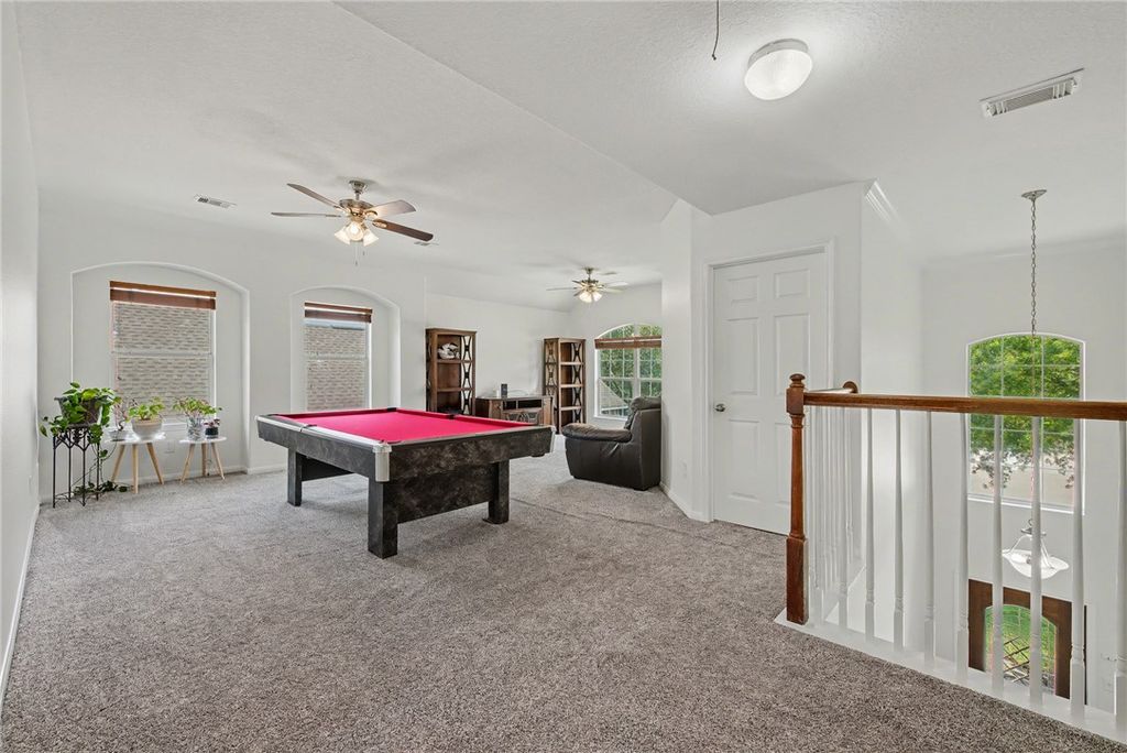 Welcome home to this beautiful 2-story gem nestled in a desirable cul-de-sac setting, offering a bright, open-concept floor plan enhanced by fresh interior paint, raised ceilings, abundant natural light, and stylish finishes throughout. The well-appointed kitchen features granite countertops with a tile backsplash, a stylish island, microwave, gas range, pantry, and ample workspace, seamlessly connecting to the main living area. Enjoy both a breakfast room for casual dining and a formal dining room for special gatherings. A private office with French doors provides the ideal work-from-home space. Retreat to the 3 generously sized bedrooms plus an oversized second living area or game room, perfect for relaxing or entertaining. Step outside to a covered patio overlooking the large backyard, ideal for outdoor gatherings or peaceful evenings at home. Take advantage of nearby fishing, boating, and the scenic beauty of the surrounding natural areas. Experience the charm of this community with large yards, and spacious homes, all while being conveniently close to local medical services, shopping, and dining in nearby Baytown.